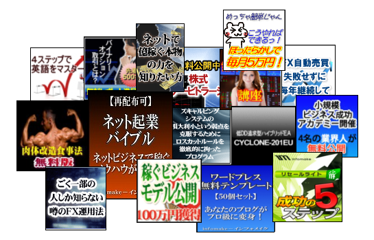 再配布権付情報商材(販売用サイト付属)や再配布権付レポート189連発!!